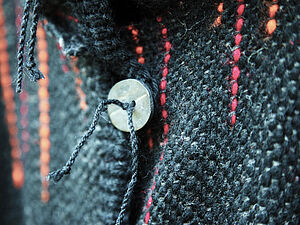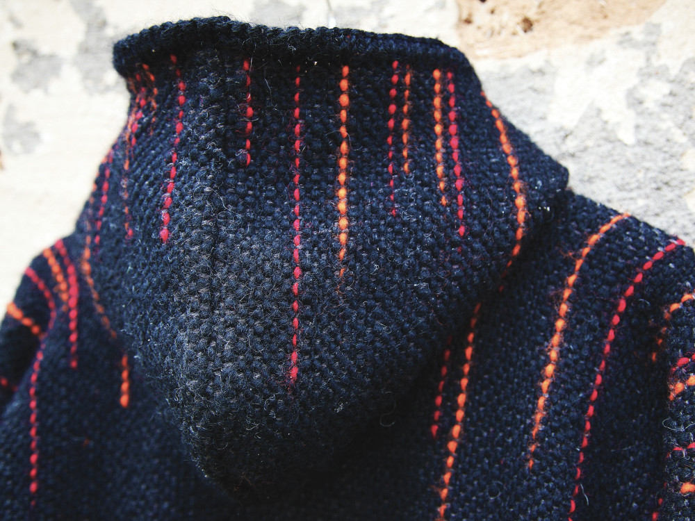 Mit dem alten Holzwebstuhl können wir Stoff aus handgesponnener Wolle bis zu 1,35 m Breite weben. Eine handgewebte Jacke hat eine feine Qualität, ist dichter als gestrickter Stoff und hält besonders auch bei windigem Wetter sehr warm.