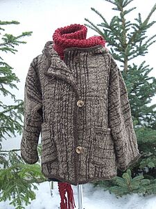 Jacken und Pullover aus reiner Schurwolle, handgewebt oder handgestrickt